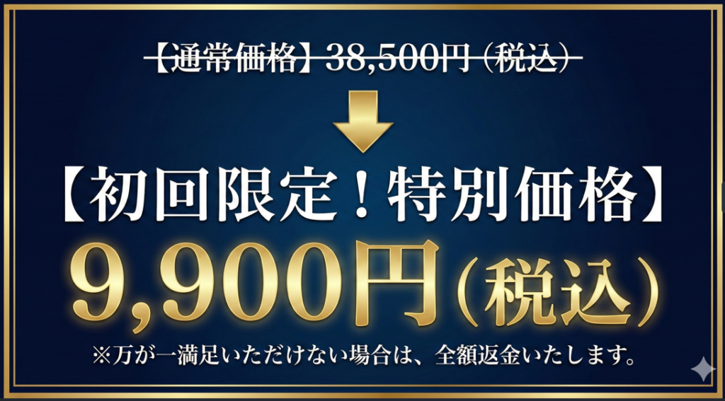 もし万が一、サービス内容に満足ができなければ、料金9,900円(税込)を全額返金させていただきます。