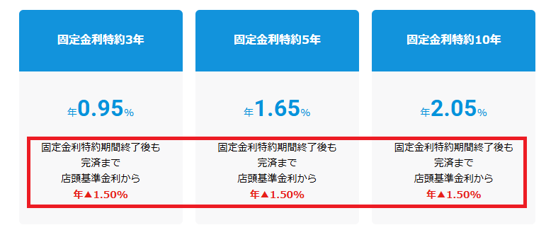 例えば、最初に『3年固定:0.95%』を選んだ人が4年目に突入する前に『次も3年固定を選ぼう』と思ったとします。