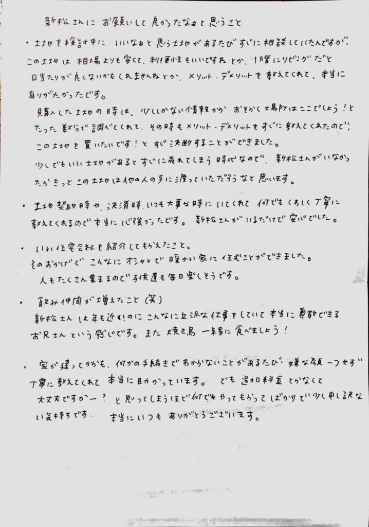 あんしんマイホーム資金計画書を作成してもらったことで、そのあたりの不安を消すことができました。