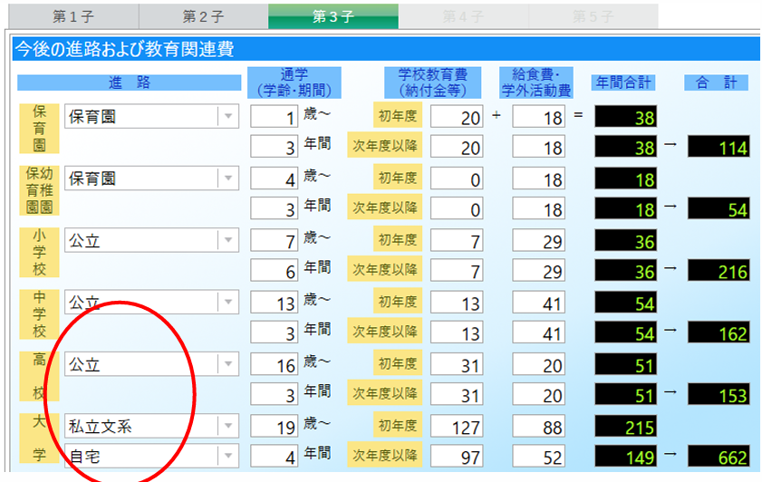 - 長男:高校は公立、大学は自宅から私立文系
