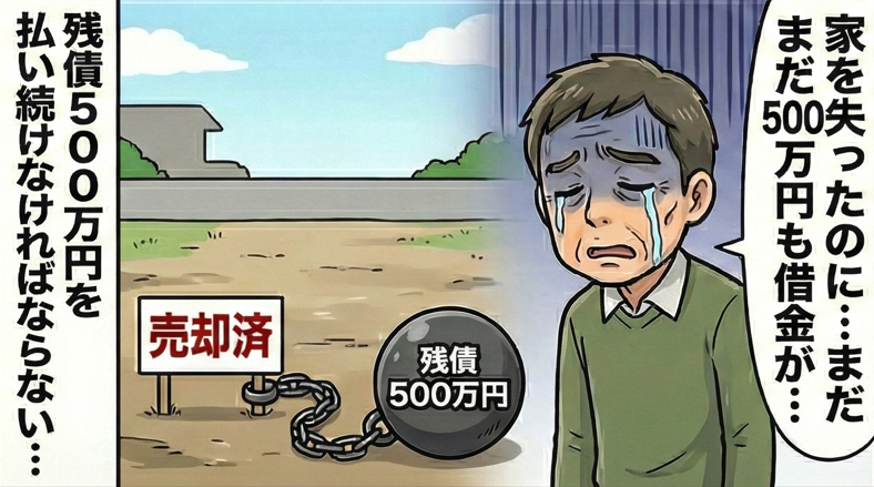 家を売っても借金が500万円残ります。当然、あなたはこの残り500万円も返済する義務があります。